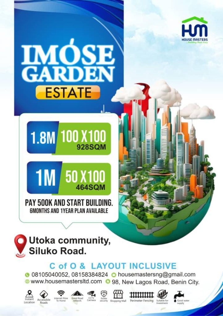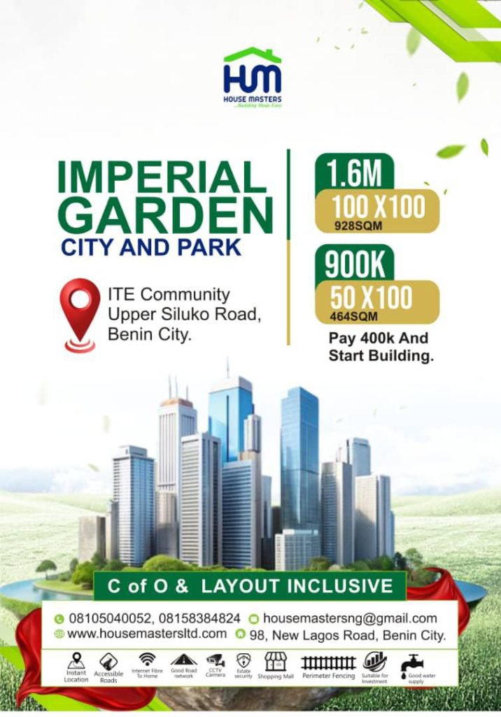 Situated in the heart of Benin City, Imperial Gardens offers a posh and residential appeal to our clientele with fast selling plots.